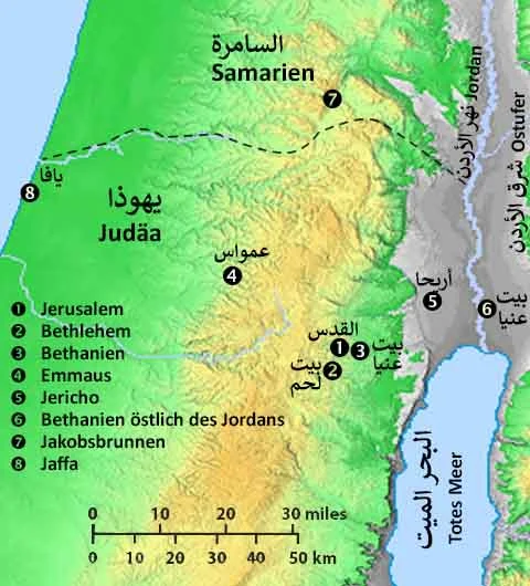 Eine Region südlich von Samarien und westlich des Toten Meeres. Die wichtigste Stadt war Jerusalem. Der Name ist abgeleitet vom Stamm Juda, der sich in diesem Gebiet niedergelassen hatte. Unter dem Prophet König David wurde es das Königreich Juda. Zur Zeit des Messias war es ein Bezirk innerhalb der römischen Provinz Iudäa.
