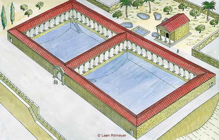 Dieser Teich wurde im Beth Zetha-Tal, direkt nördlich des Tempelkomplexes in Jerusalem gebaut. Der nördliche Teil des Teichs wurde im 8. Jahrhundert v. Chr. gebaut und versorgte die Stadt mit Wasser. Der südliche Teich wurde im 2. Jahrhundert v. Chr. erbaut und lag etwas tiefer. Kranke Menschen warteten unter den Säulengängen dieses Teichs in der Hoffnung, geheilt zu werden. Unser Herr Jesus heilte an diesem Teich einen Mann, der seit 38 Jahren krank war. Das machte die religiösen Leiter wütend auf ihn.